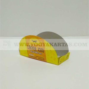 Dus Leker dengan jenis bahan kertas Marga dan finishing Full Warna, biasa digunakan untuk kemasan makanan/kemasan makanan ringan/kemasan produk-produk UKM, dengan bahan kertas Marga/Duplek dengan berbagai berat yang berbeda-beda.