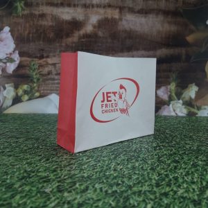 Kantong Kertas Jet Chicken, Yogyakartas memproduksi Kantong Kertas Untuk kemasan ayam tepung, kantong kertas tersebut menggunakan kertas erzat atau kertas Barier spesifikasi lengkap sebagai berikut: