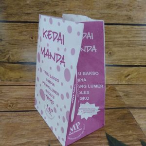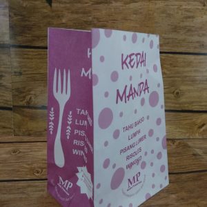 Kantong Kertas Kedai Manda, Yogyakartas memproduksi Kantong Kertas Untuk Aneka Snack , kantong kertas tersebut menggunakan kertas erzat atau kertas Barier spesifikasi lengkap sebagai berikut: