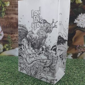 Kantong Kertas Low and Slow, Yogyakartas memproduksi Kantong Kertas Untuk kemasan food and beverage sebuah cafe , kantong kertas tersebut menggunakan kertas erzat atau kertas Barier spesifikasi lengkap sebagai berikut: