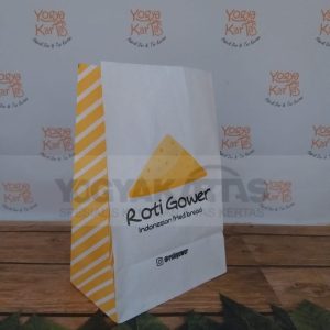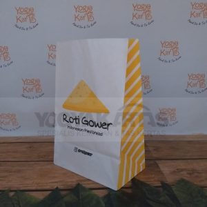 Kantong Kertas Roti Gower, Yogyakartas memproduksi Kantong Kertas Untuk Roti pesanan dari kota sendiri yaitu Yogyakarta. Kantong kertas tersebut menggunakan kertas erzat atau kertas Barier spesifikasi lengkap sebagai berikut: